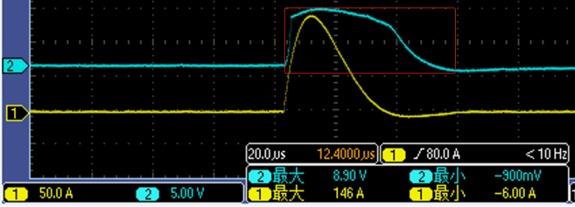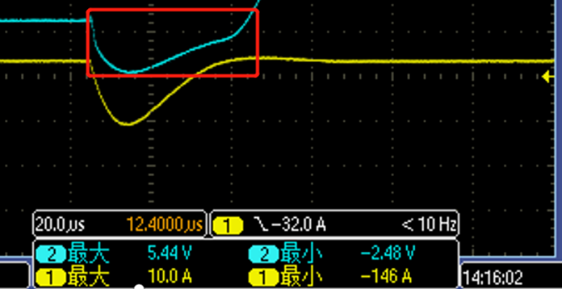 我們知道PN結(jié)有電流,會(huì)發(fā)熱,但只要不超過規(guī)格書標(biāo)明出的-0.3到30V的工作電壓范圍,一定不會(huì)壞,對(duì)吧。再返回去看圖二圖三的電壓波形,假設(shè)充電IC端遭受負(fù)向的這兩個(gè)波形(把圖二翻轉(zhuǎn)180度),
