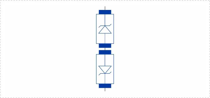 上面兩顆BV-FE05ZA的P極串聯(lián)在一起就組成了一顆雙向的TVS,如下圖四,TVS無(wú)論遭受正向還是負(fù)向的EOS沖擊,電流總會(huì)流經(jīng)一個(gè)N到P的反向結(jié),因而鉗位電壓的絕對(duì)值也是在8.9V左右。